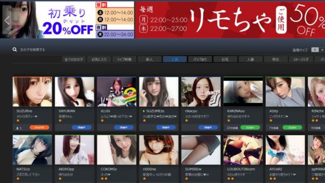1日の約30万人も利用しており、数あるチャットサイトの中でもダントツ人気ナンバー1のライブチャットです。